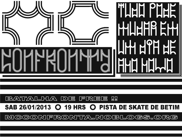 A 5º edição do McCONFRONTA, e a primeira de 2013, vem com a temática “tudo pode mudar em um dia de ano novo”. Retirada (e livremente traduzida) da música “War within a breath” (composta em homenagem ao levante zapatista de 1º de Janeiro de 1994) do Rage Against the Machine, a frase foi escolhida por refletir o espírito de mudanças que os inícios de novos ciclos nos trazem. Outro fator que nos levou à esta escolha foi a “Marcha Silenciosa” zapatistas que aconteceu ao final do ano passado, enquanto pessoas menos esclarecidas aguardavam pelo “fim do mundo” . Assim como o R.A.T.M., o C2OFF também é um apoiador dos povos em luta pela sua autonomia. Marcos somos todxs!